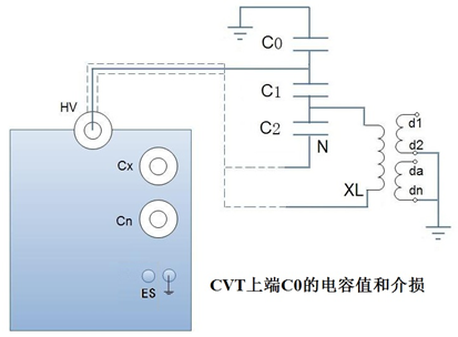 3、反接屏蔽法測量CVT上端C0的電容值和介損測量模式:反接法。電壓≤2kV