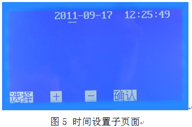 5、在圖2頁面下,按 選擇 鍵移動光標(biāo)√ 至?xí)r間設(shè)置處,按 確認(rèn) 鍵即可進(jìn)入時(shí)間設(shè)置子頁面(圖5)。