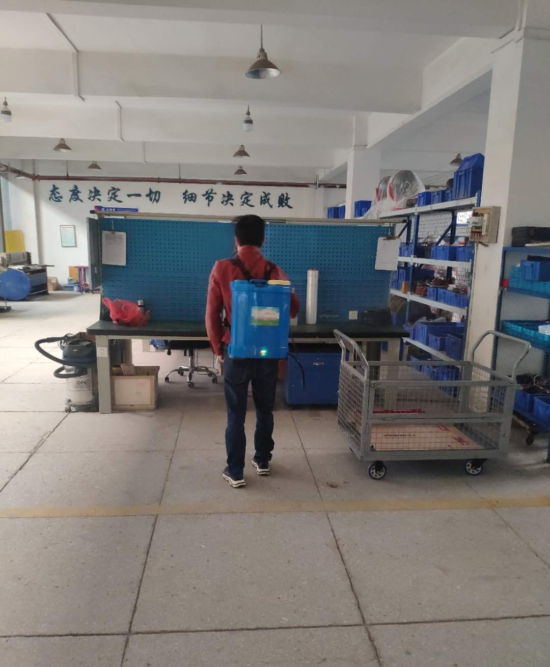 在正式復工之前,公司安排了專業的消毒人員,對公司辦公區域,生產制造車間,辦公走廊,樓梯間,包括公司用車,整個公司廠區的里里外外進行了全面的消毒清潔工作。