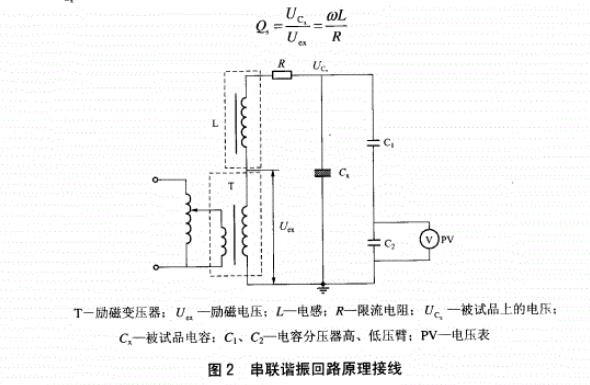 由于試驗回路中的R很小,故試驗回路的品質因數很大。在大多數正常情況下,Q。可達50左右,即輸出電壓是勵磁電壓的50倍,因此用這種方法能用電壓較低的試驗變壓器得到較高的試驗電壓。由于試驗時回路處于諧振狀態,回路本身具有良好的濾波作用,電源波形中的諧波成分在被試品兩端大為減少,通常輸出良好的正弦波形電壓。