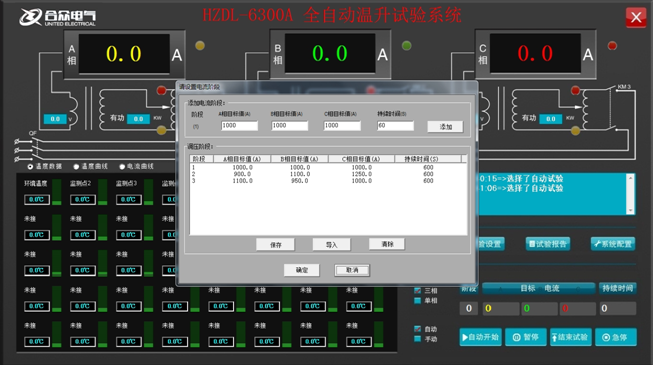 電力檢測設備有的在使用前需要設置好參數,下面合眾電氣技術專家舉例介紹,全自動溫升試驗裝置可設置階段性試驗。