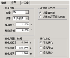 變化初值:變化初值是前面所設(shè)置好的諧波的值。初值是從前頁的諧波數(shù)據(jù)頁面中取來的,不能直接修改。要修改這個初值必須在諧波數(shù)據(jù)頁面里進(jìn)行。初值在這里以幅值的方式表示。