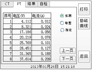 2)取整:智能互感器測試儀對實測的勵磁數據按電流取整后的結果顯示,10mA以下按1mA遞增、10mA~100mA以上按5mA遞增、100mA以上按0.1A遞增,取整的結果便于數據記錄、比對;